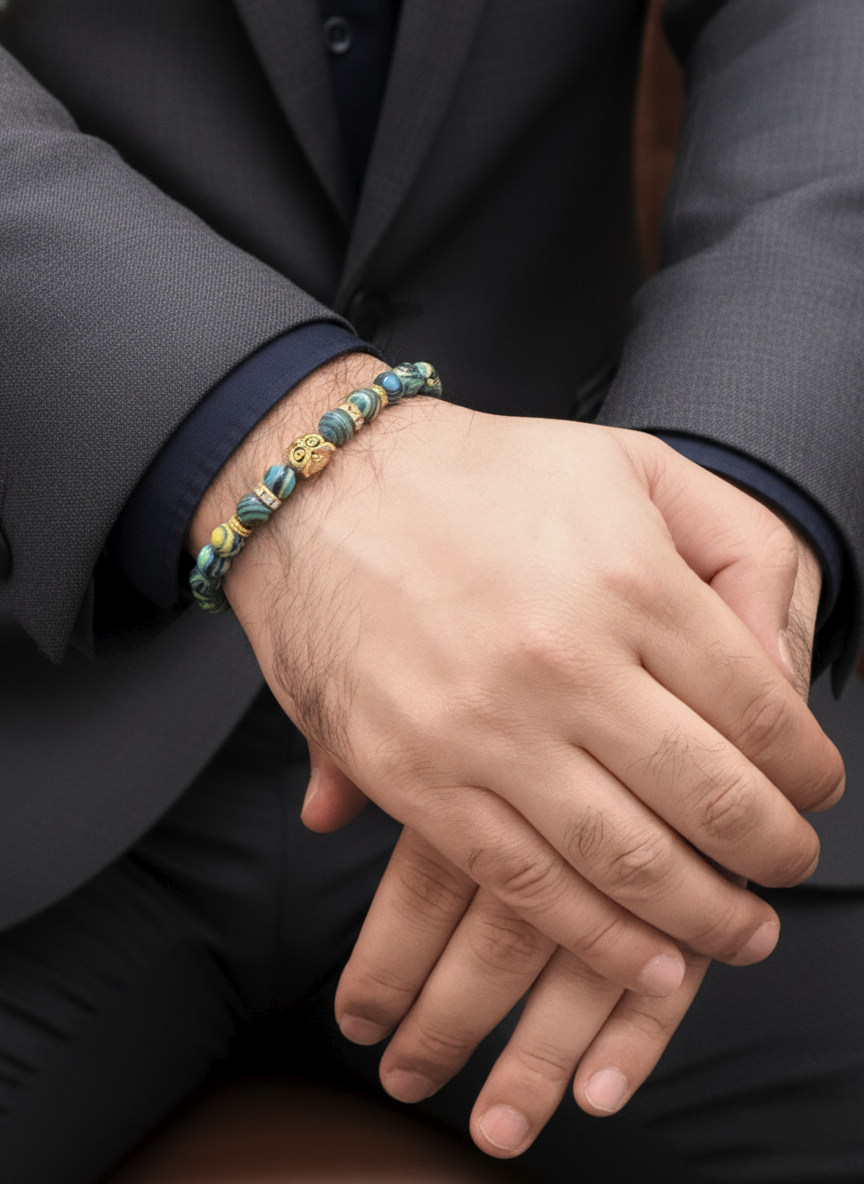 Because African turquoise jasper is a natural material, each bracelet will show slight differences in color distribution and surface detail. These variations ensure that every piece is unique and authentic.