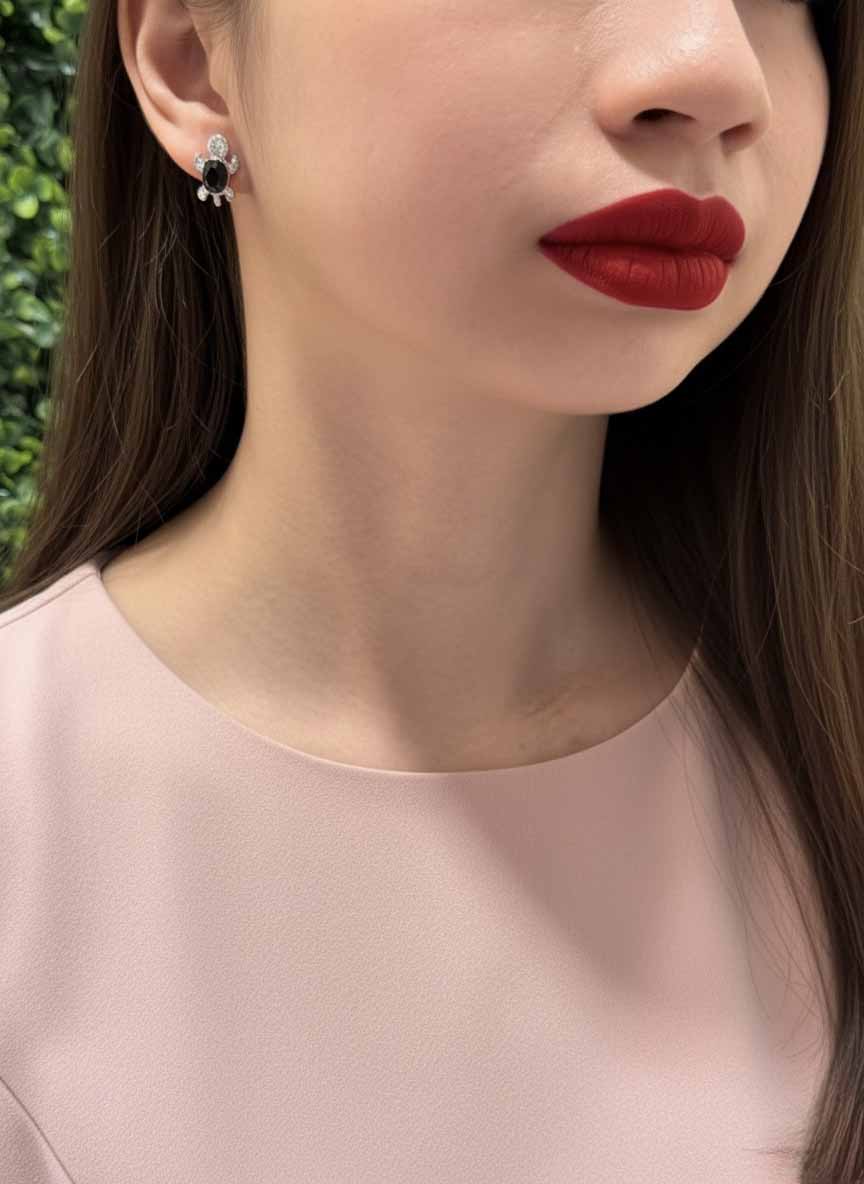 Black Obsidian Turtle Stud Earrings – sleek black turtle design for timeless elegance.