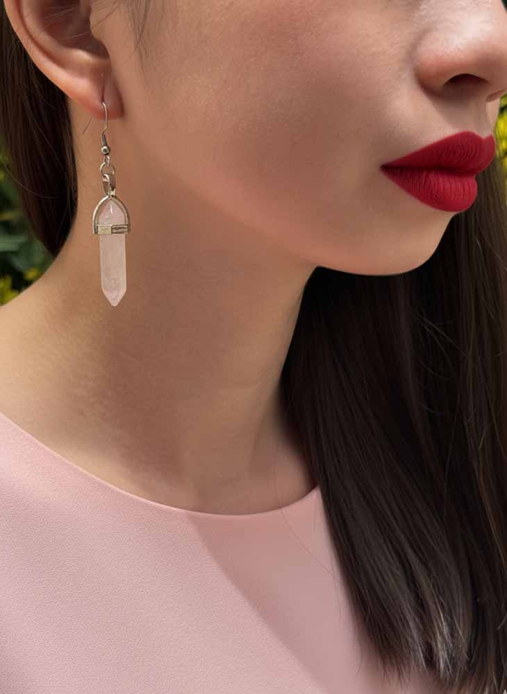 Delicate yet powerful, these Rose Quartz point earrings radiate gentle love, emotional healing, and inner calm.