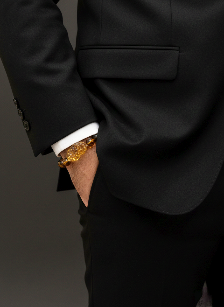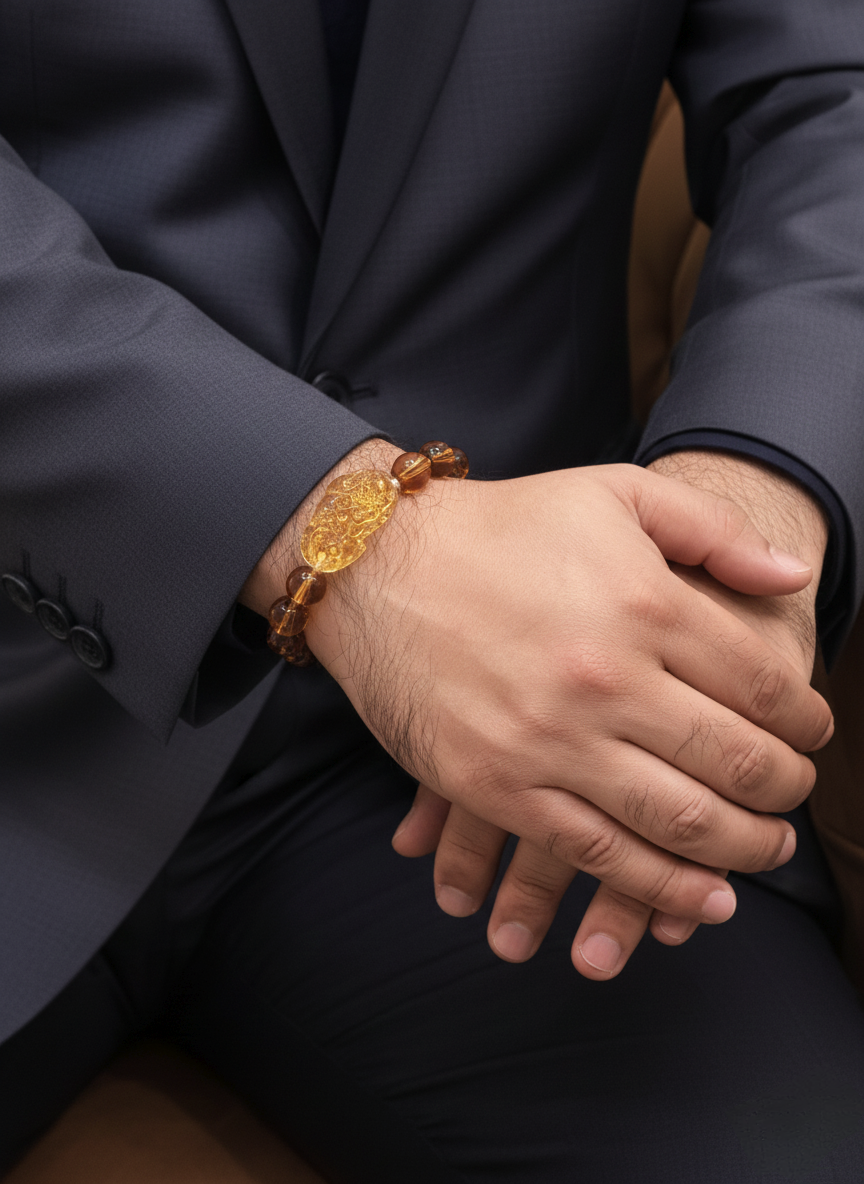 The natural accent elements provide gentle contrast and texture, allowing the citrine beads to remain the focal point. The design stays minimal, making the bracelet versatile enough for both men and women.