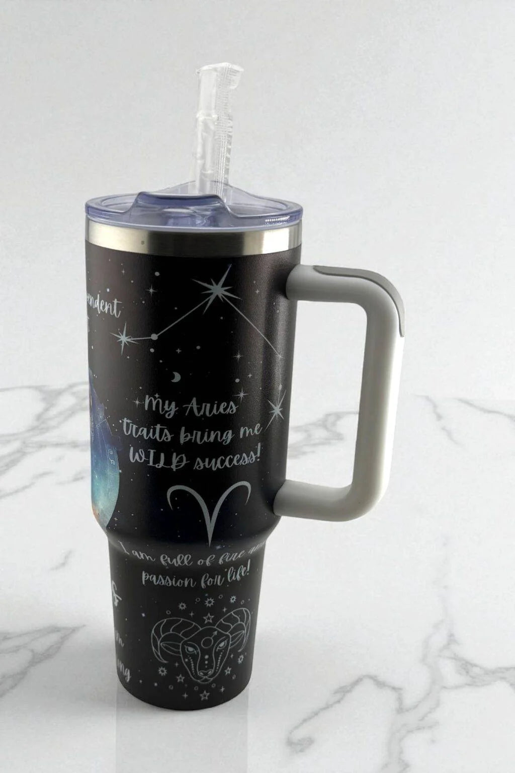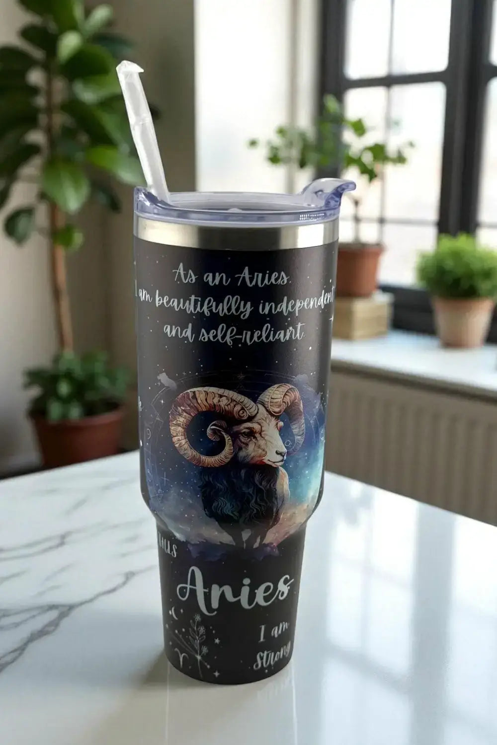 Fuel your day with Aries fire. This empowering tumbler features the strong and fearless ram, celebrating your zodiac spirit of independence, courage, and passion. Hydrate with bold energy wherever you go.
