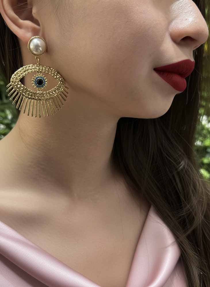 A Golden Evil Eye Pearl for your energy, these Divine Vision earrings combine ancient protection with modern glamour. The golden Evil Eye design radiates with celestial sparkle, symbolizing inner clarity and divine watchfulness. Set with luminous pearl studs and radiant crystal pupils, they blend beauty and energy shielding in one powerful design.