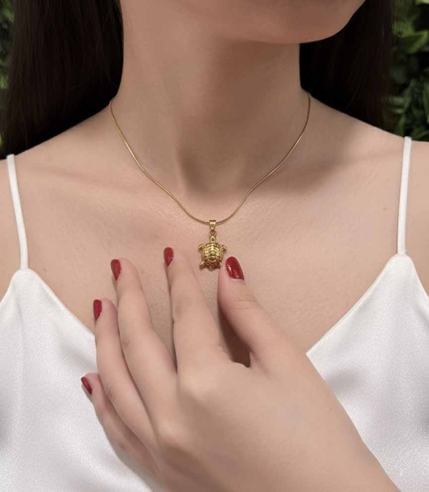 Golden Sea Turtle Necklace – elegant women’s turtle pendant with golden shine.
