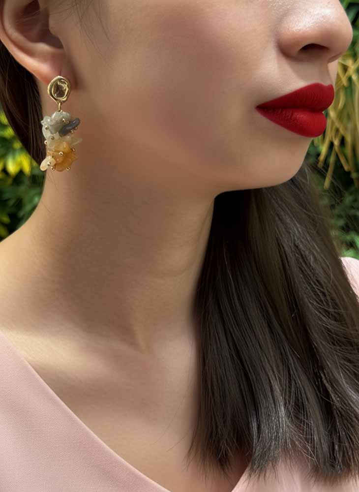 The Harvest Drop earrings blend earthy green, cheerful yellow, and vibrant orange aventurine—each stone carrying its own blessing. Known for luck, abundance, and creativity, this multi-stone design uplifts the spirit and energizes the body while making a bold, grounded style statement.