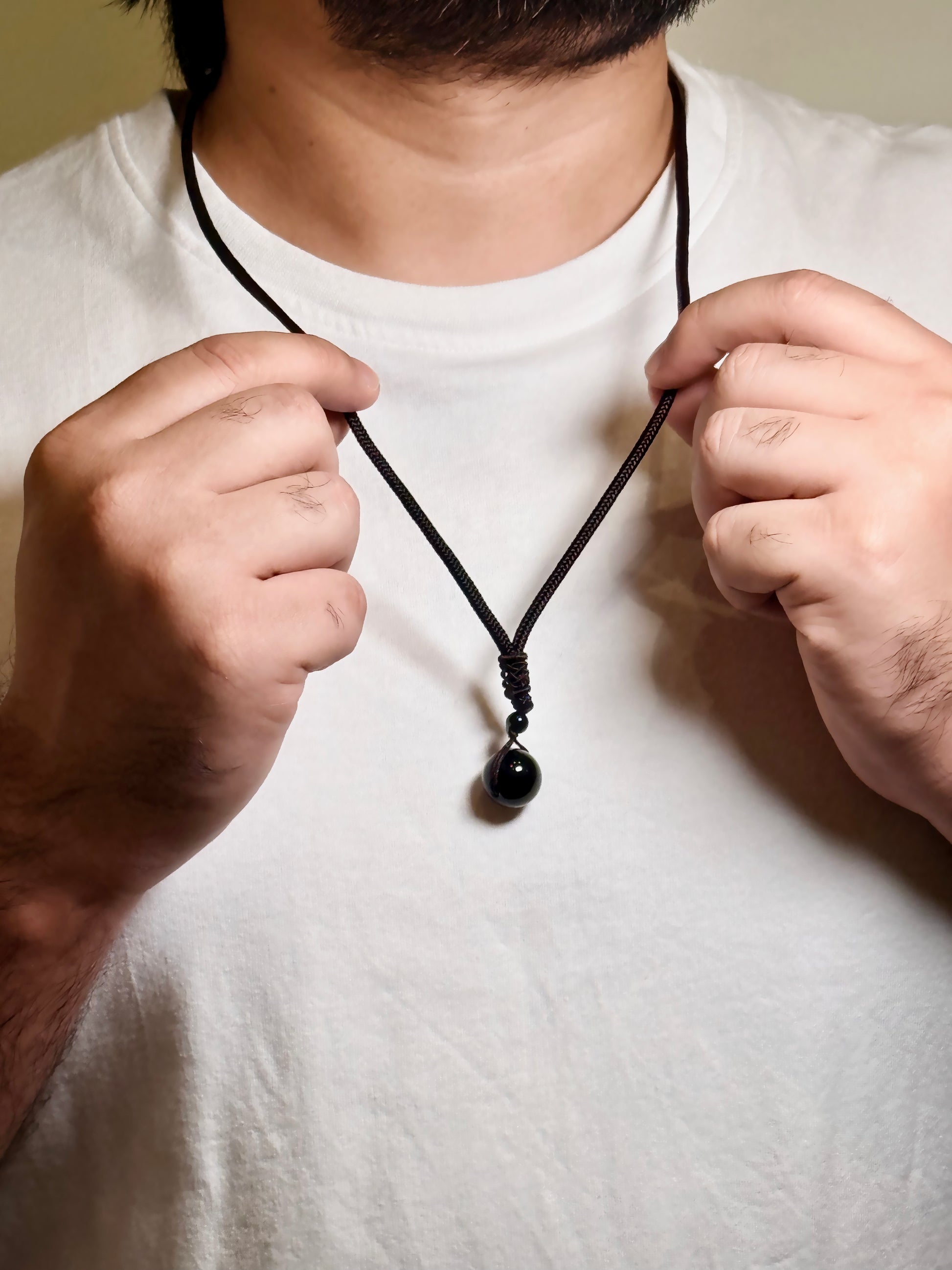 The men’s black onyx bead necklace on adjustable cord offers a refined and minimalist approach to men’s jewelry. Featuring a single polished black onyx bead, this necklace delivers a clean look that is easy to style and comfortable to wear.