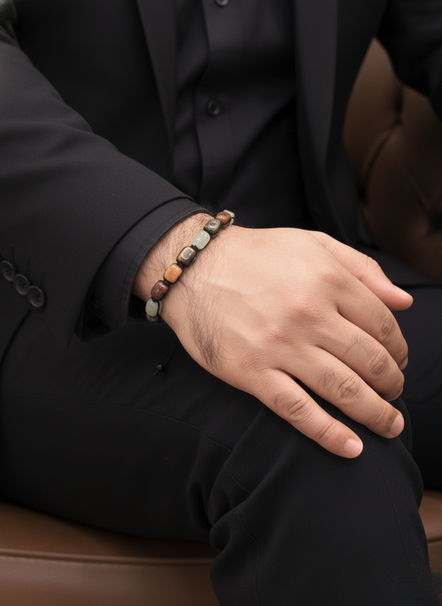 Because natural stones are used, slight variations in color, pattern, and surface finish may occur. These differences highlight the authenticity of the materials and ensure that each bracelet remains unique.
