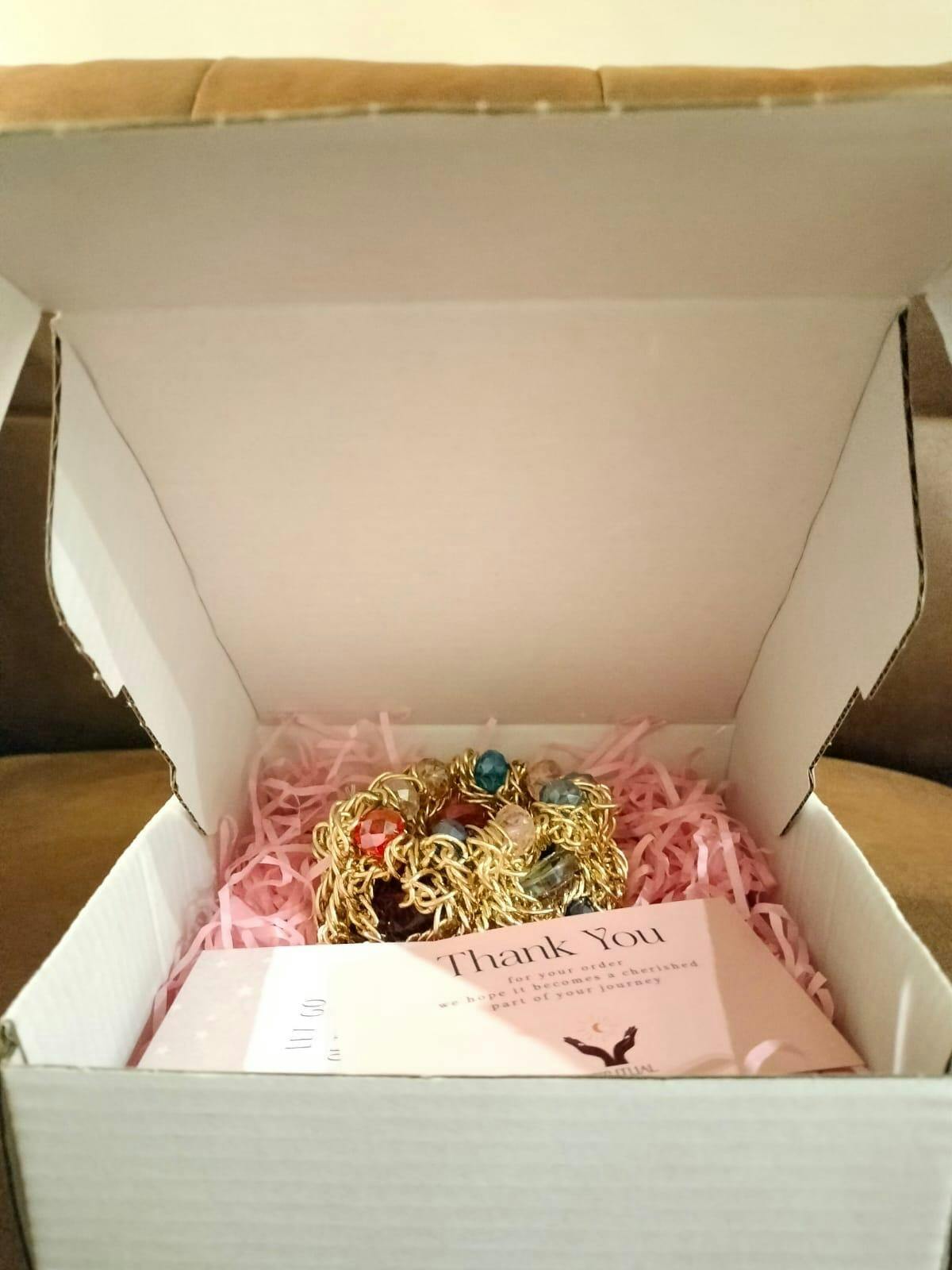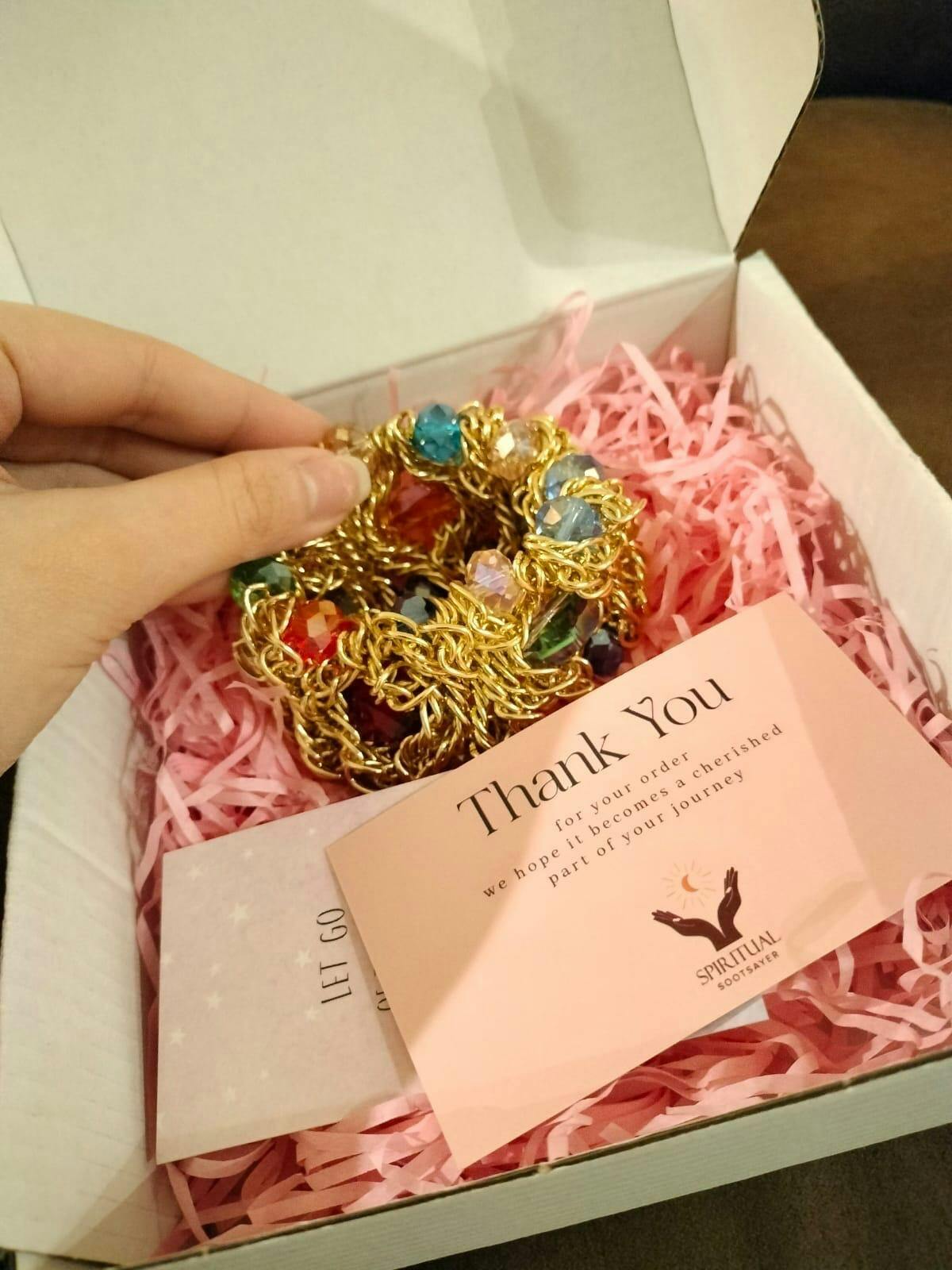 I’m honestly obsessed with this multicolor faceted crystal bracelet! Each bead catches the light beautifully — it sparkles in every angle like tiny rainbows on my wrist. The mix of colors makes it super versatile; it goes with every outfit while still feeling full of positive, vibrant energy. The faceted cut gives it such an elegant, premium look, and the quality is amazing — it feels sturdy yet so comfortable to wear. I can literally feel the uplifting vibe every time I put it on. It’s one of those pieces that instantly makes you smile and adds a little magic to your day.