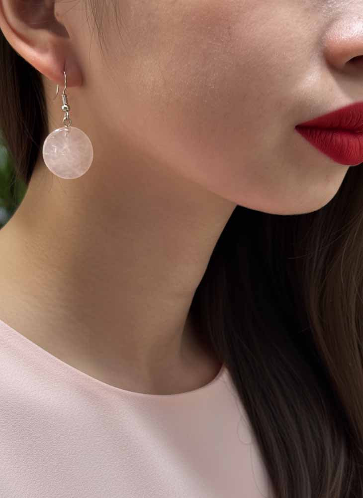 Rose Quartz Drop earrings are crafted from natural Rose Quartz, the stone of unconditional love. These circular drops carry a soft pink glow that uplifts emotional well-being and promotes inner peace. Perfect for those seeking balance in relationships and a deeper connection with their feminine energy.