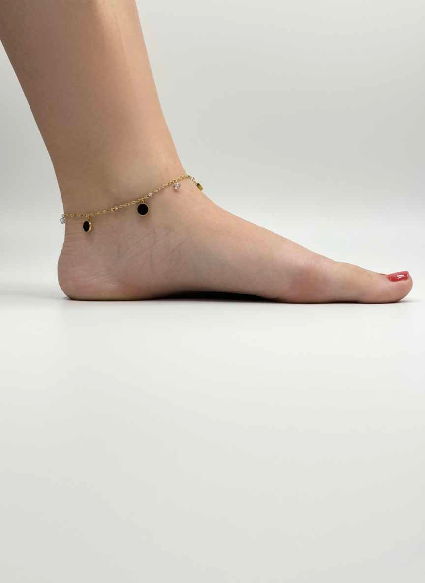 Stylish Black and Gold Anklet – Elegant Black Obsidian Anklet with Modern Charm