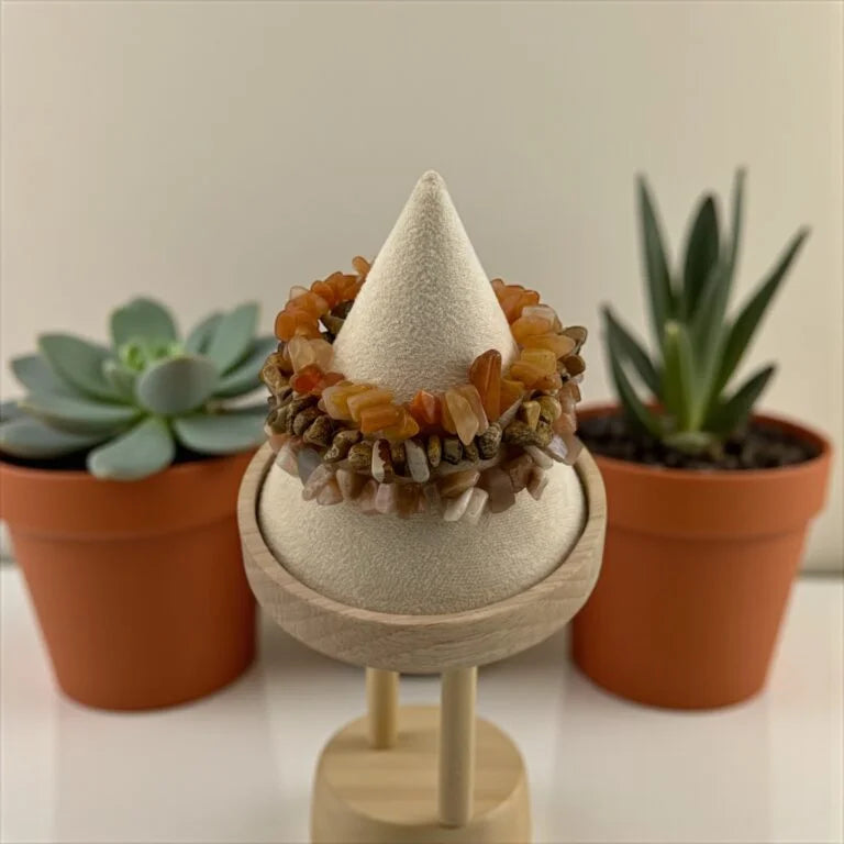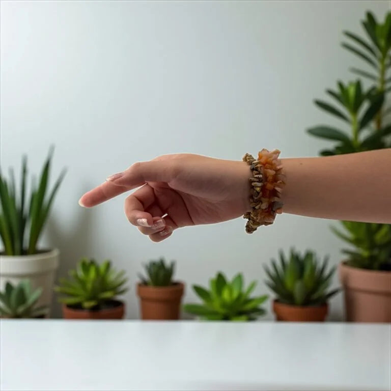 A vibrant fusion of Sunstone and Picture Jasper promotes joy, courage, and emotional stability. Wear it to attract positivity, boost self-confidence, and stay grounded every day.
