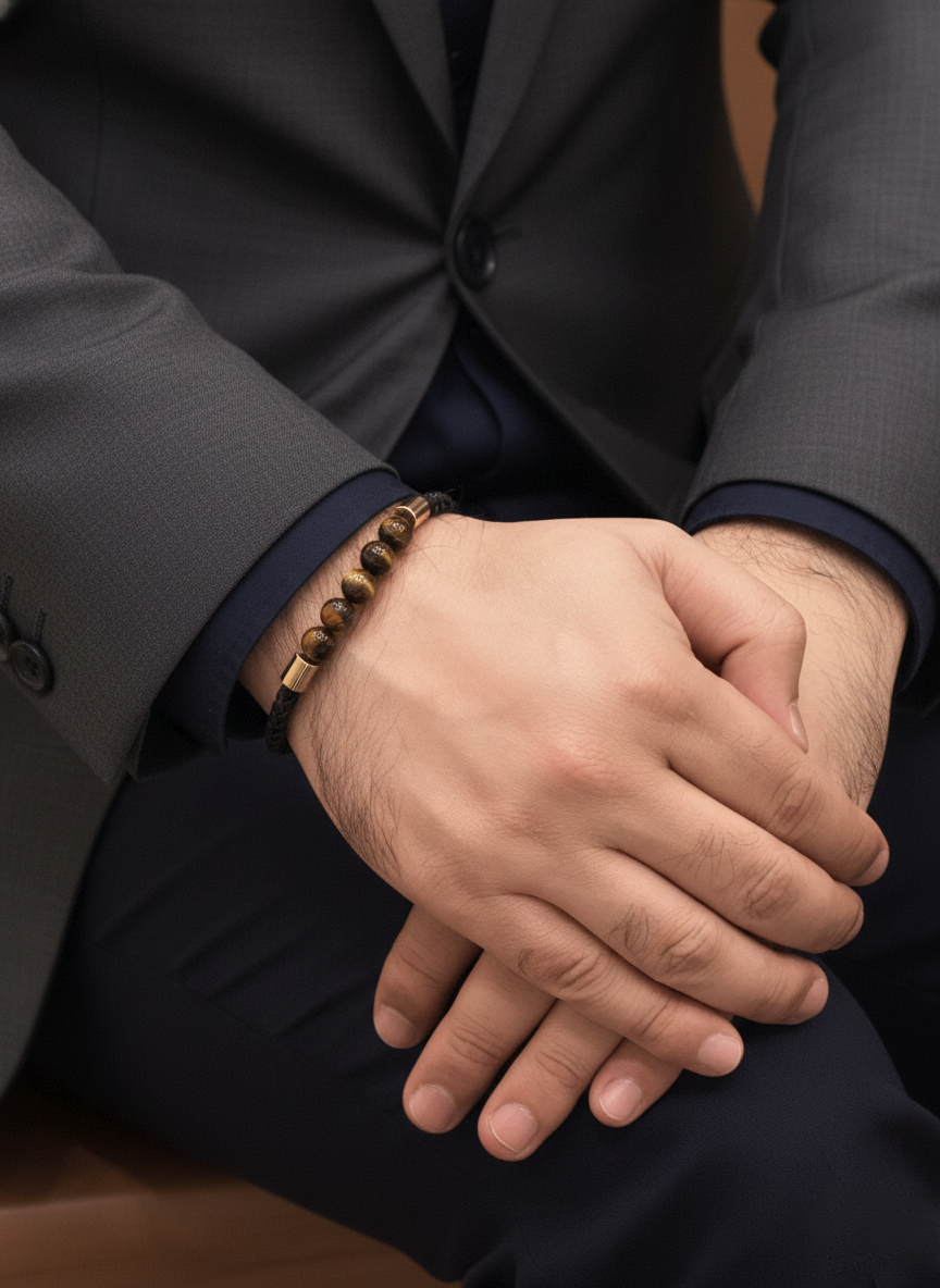 The tiger eye beaded bracelet with gold accents is designed for those who value natural materials paired with understated elegance. This unisex bracelet features polished tiger eye stones known for their layered golden brown tones and natural banding.