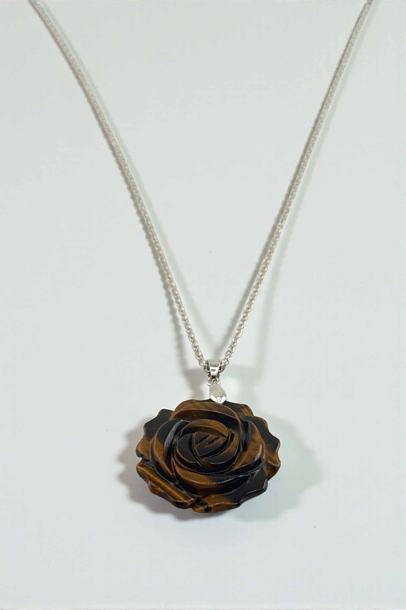 Tiger Eye Rose Carved Pendant Necklace – Protection, Confidence and Grounded Strength