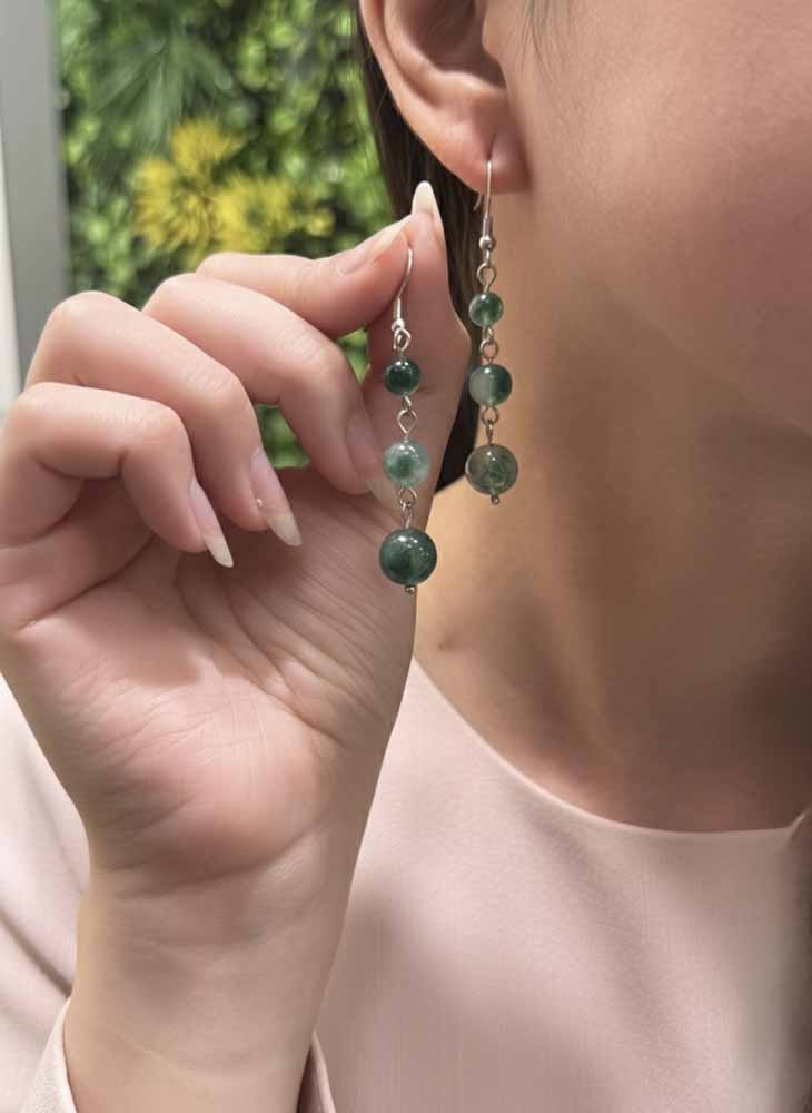 The Verdant Soul earrings bring a serene and earthy presence to your style. Crafted with three polished green aventurine stones per earring, these drops symbolize emotional renewal, compassion, and fresh beginnings. Their gentle sway mirrors the natural rhythm of life, offering both spiritual harmony and minimalist charm.