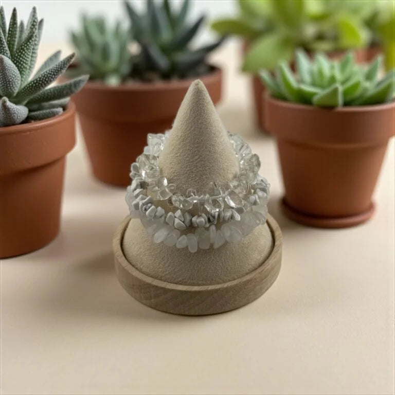 - White Howlite: Relieves stress, encourages patience, and aids emotional healing.