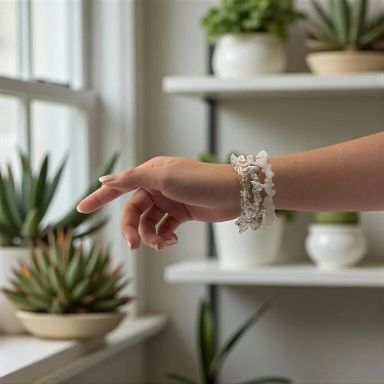 A serene blend of peace and focus — this bracelet unites the calming energy of White Howlite with the clarity-enhancing power of Clear Quartz.